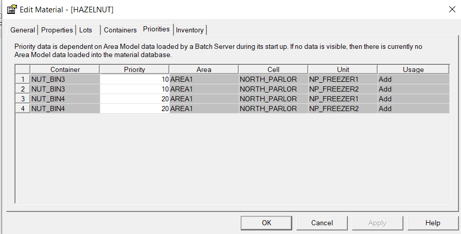 批次完成后,FactoryTalk Batch 服务器会将消耗或分配的库存发送至物料服务器,随后物料服务器会将其添加到物料数据库中。您可以在物料编辑器中查看库存水平。如果物料服务器故障,导致您必须在无服务器的情况下运行基于物料的配方,则必须手动更新物料数据库中的库存。