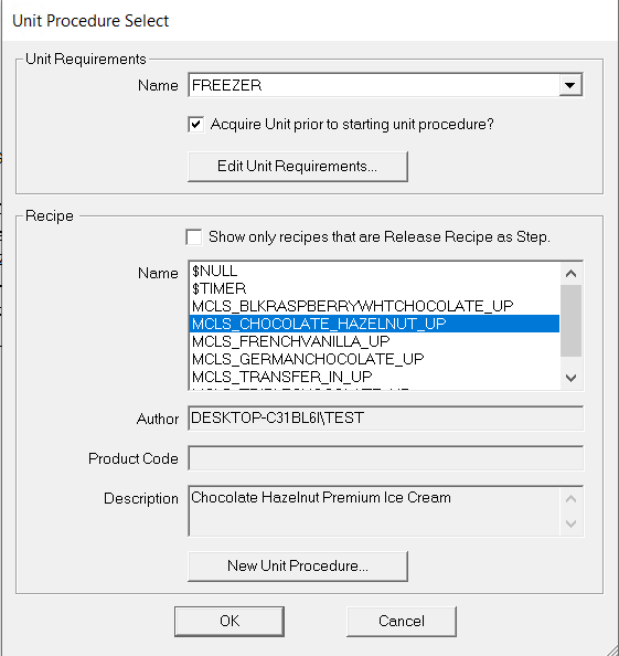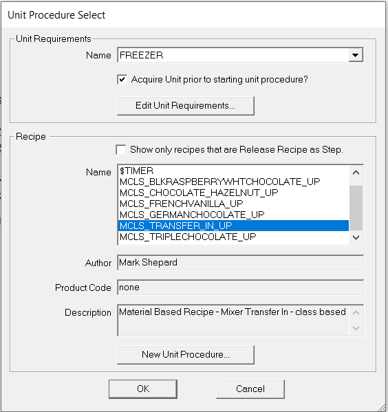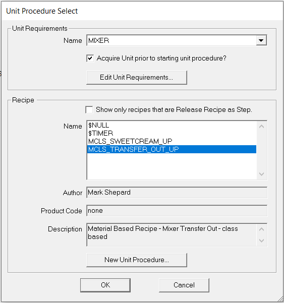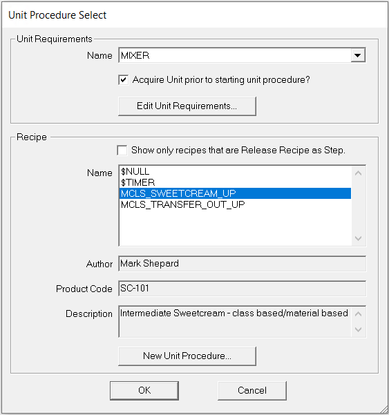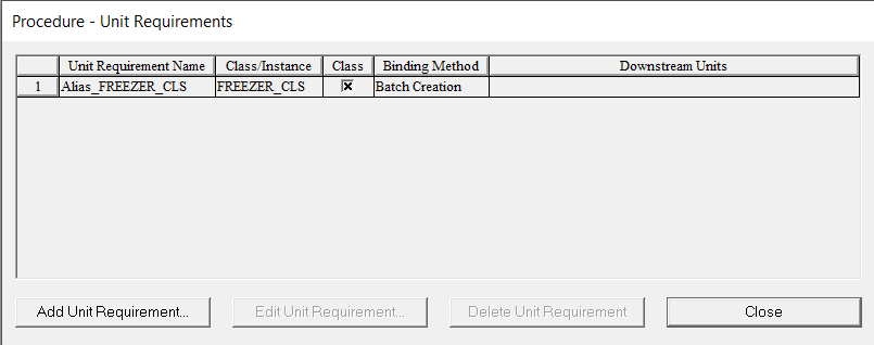 - 选择 单元程序Unit Procedure,然后单击 确定。打开“单元需求”对话框。