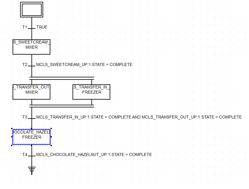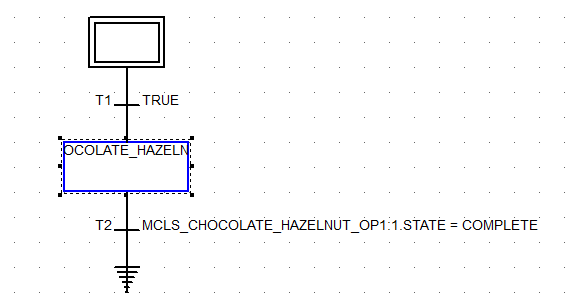 - 选择最后一个转换,单击 添加步骤 按钮,然后添加 MCLS_CHOCOLATE_HAZELNUT_UP,并将 FREEZER 作为设备需求。