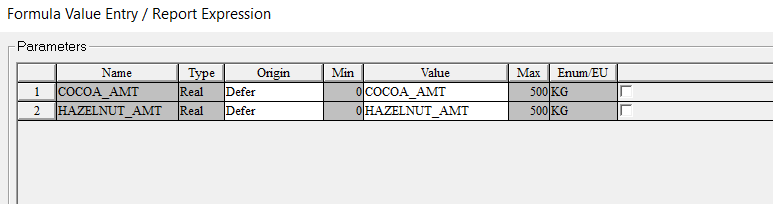 公式值的来源是延迟的,因此当批次添加到批次列表时,参数会显示出来,以便操作员有机会输入值。