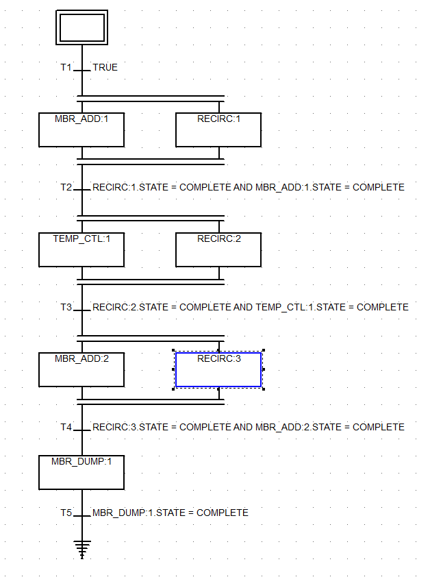 - 选择 基于类,选择 MBR_FREEZER_CLS,然后单击 确定。新单元程序的初始步骤和最终步骤将显示在 SFC 视图中。